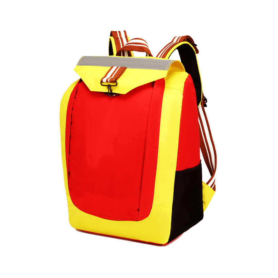 背部有海绵缓冲垫,便于通风透气,左右两侧有耳包,采用高强度拉链拉合,缝有反光条,便于识别。