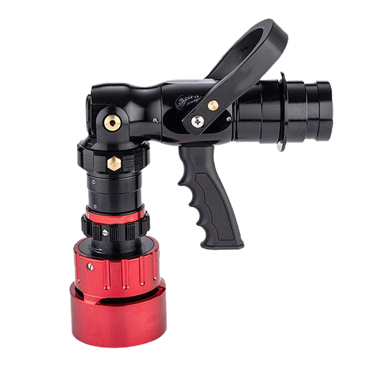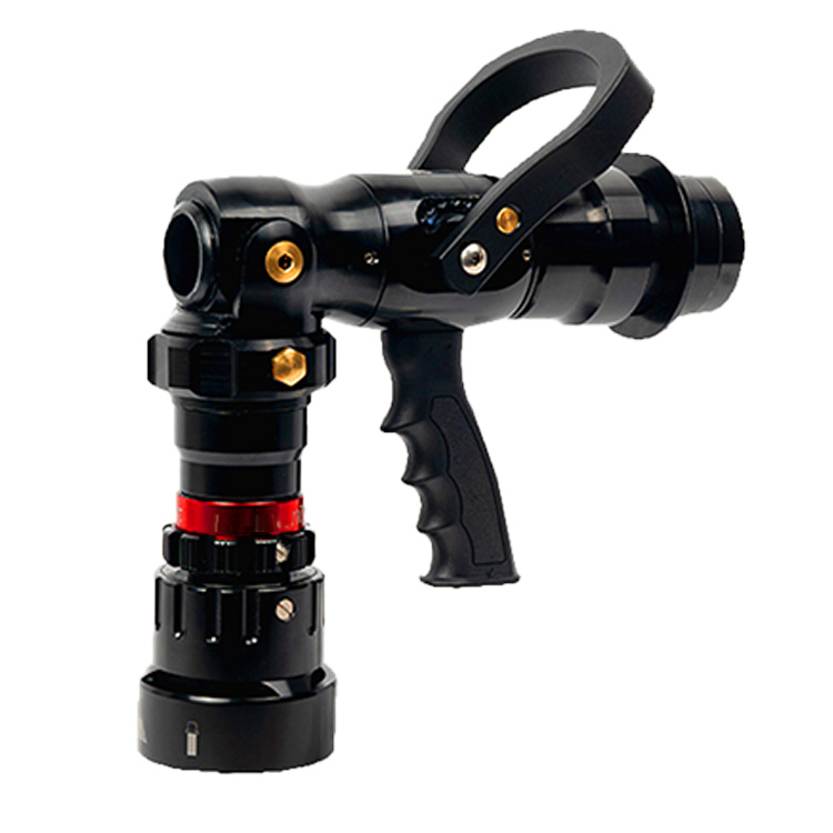 合起状态可以调节流量打水,可选择直流-开花-喷雾-冲洗四种状态。在拉出前端泡沫发生器能产生高质量的B类泡沫,枪体折断后可打A类泡沫。
